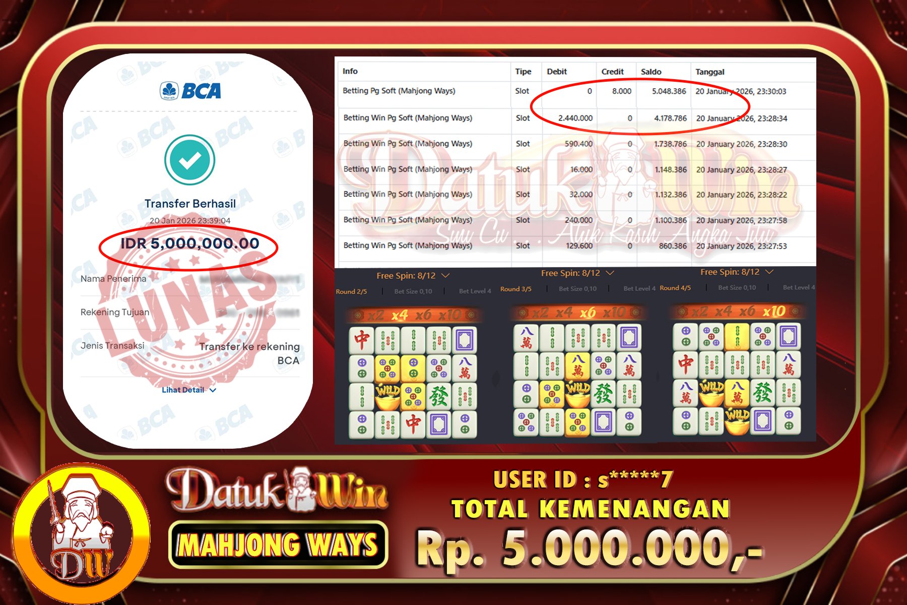 Salah satu keunggulan dari situs DATUKWIN adalah bukti pembayaran yang jelas dan terbuka. Setiap transaksi keuangan, baik deposit maupun penarikan, dicatat secara sistematis dan dapat diakses oleh pengguna. Hal ini memberikan rasa aman bagi pemain, karena mereka dapat memverifikasi setiap pembayaran yang dilakukan. Selain itu, adanya sistem keamanan yang ketat menjamin bahwa data pribadi dan keuangan para pemain dilindungi dengan baik.