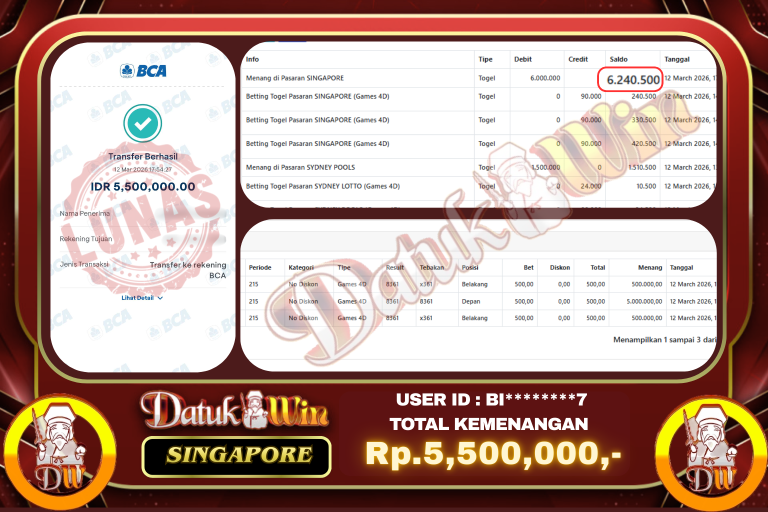 Selamat Atas Kemenangan Member Setia Kami Hari Ini !