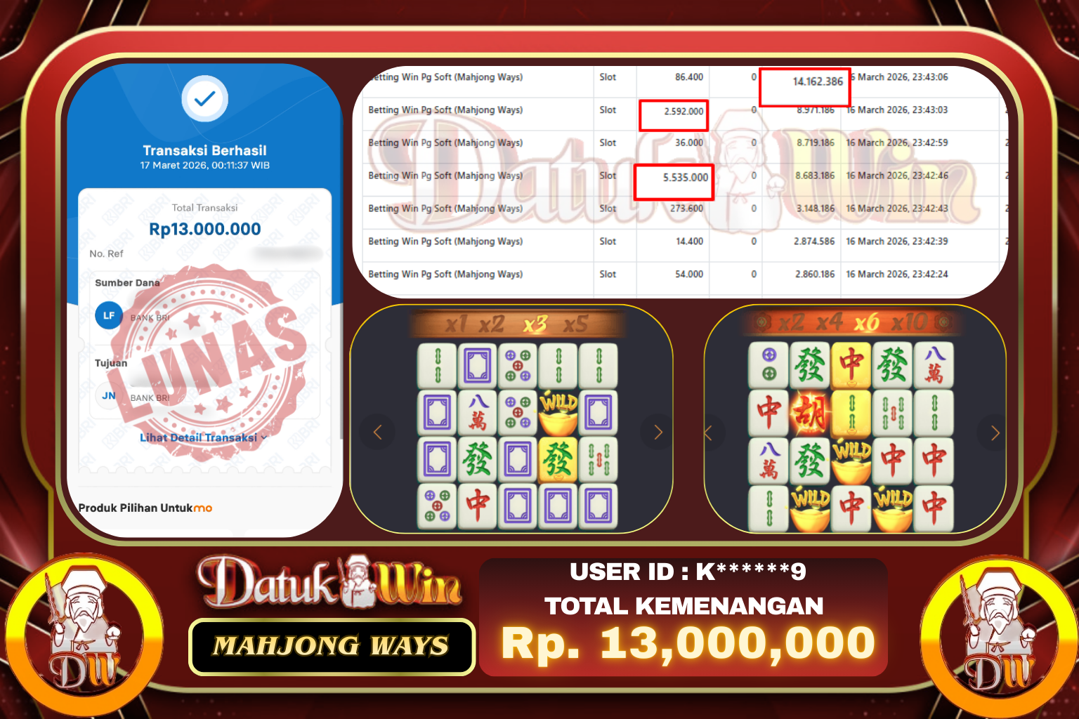 Bukti Pembayaran Jackpot 17 Maret 2026 – DATUKWIN