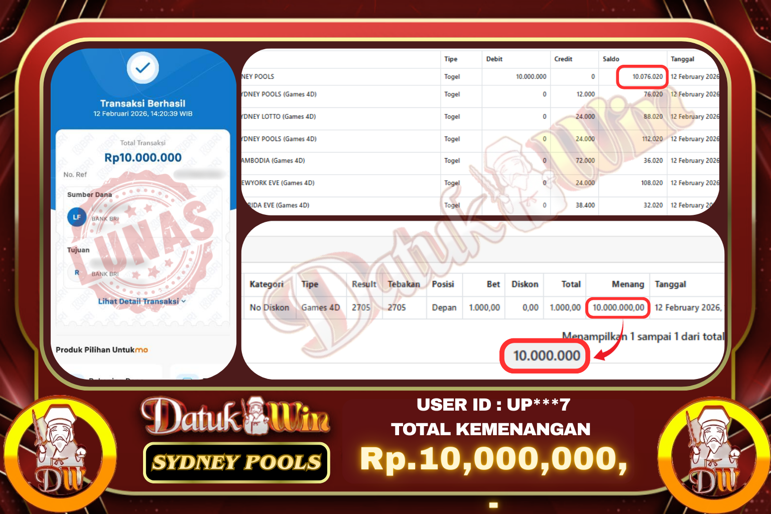 Bukti Pembayaran Jackpot 24 FEBRUARI 2026 – DATUKWIN